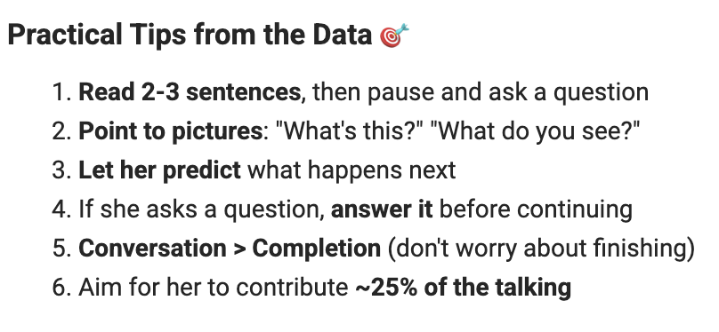 I asked: “what maximizes engagement during reading sessions?”, and Sonnet nailed it.